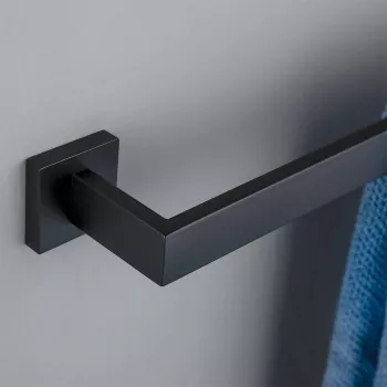 Matte Black Stainless Steel Wall-Mounted Towel Bar with Hook